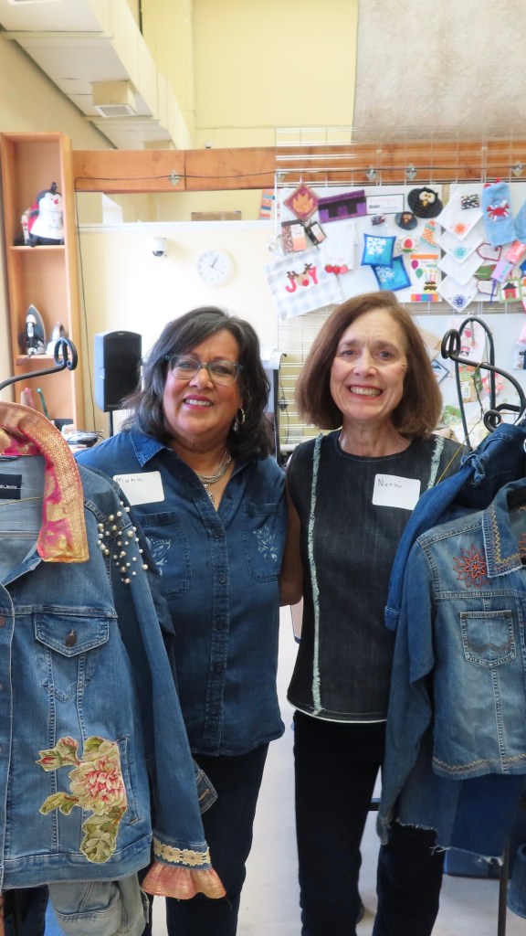 At the April 2025 Meetup, Nora and Mona inspired us with creative techniques to add flair to our favorite denim pieces! From hand and machine stitching, appliqué, sashiko, piecing in decorative fabrics, to glitter, pearls, and even painting — the possibilities are endless